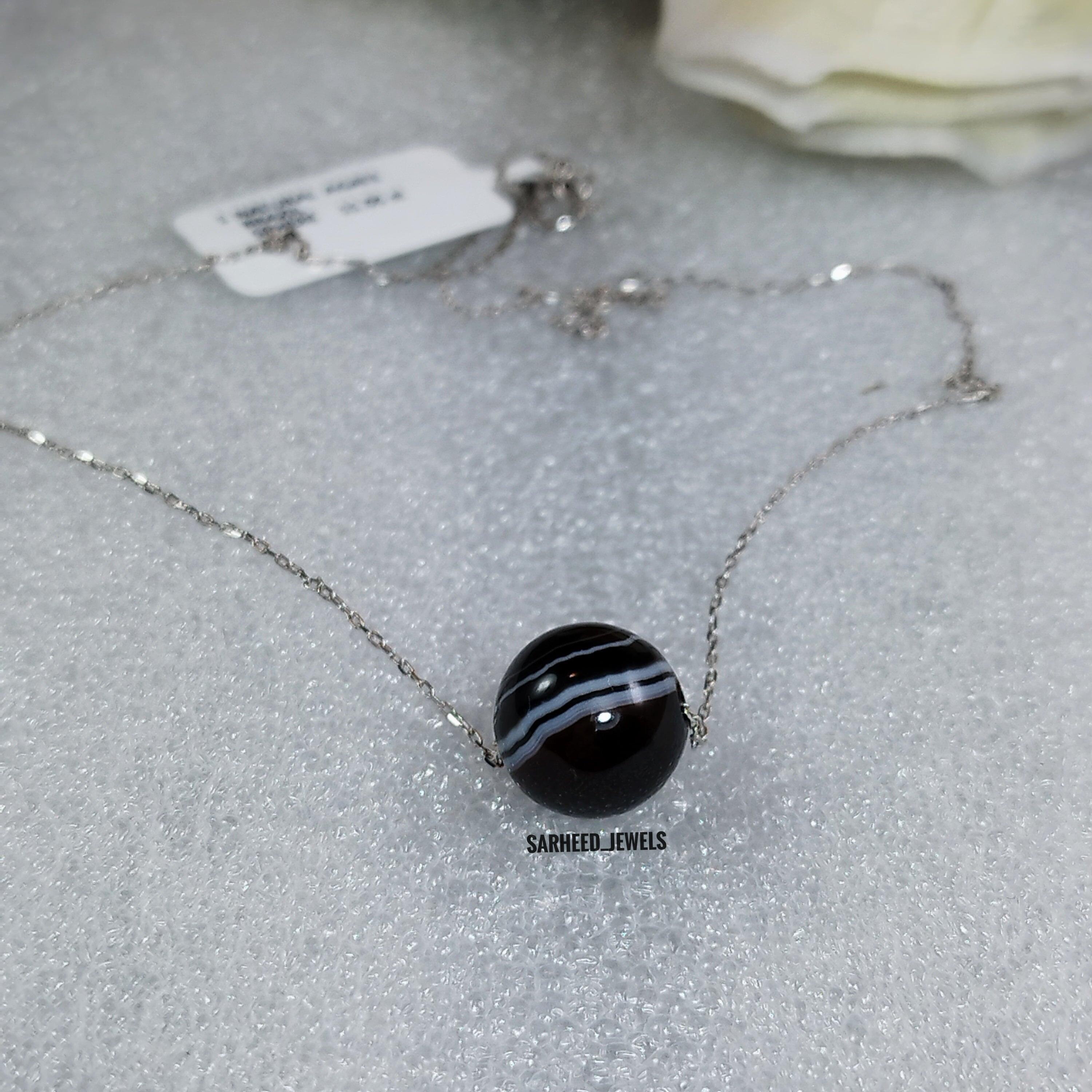 Sarheed Jewels | Where Rare Gemstones Meet Master Craftsmanship | Natural Banded Agate 18K White Gold Necklace