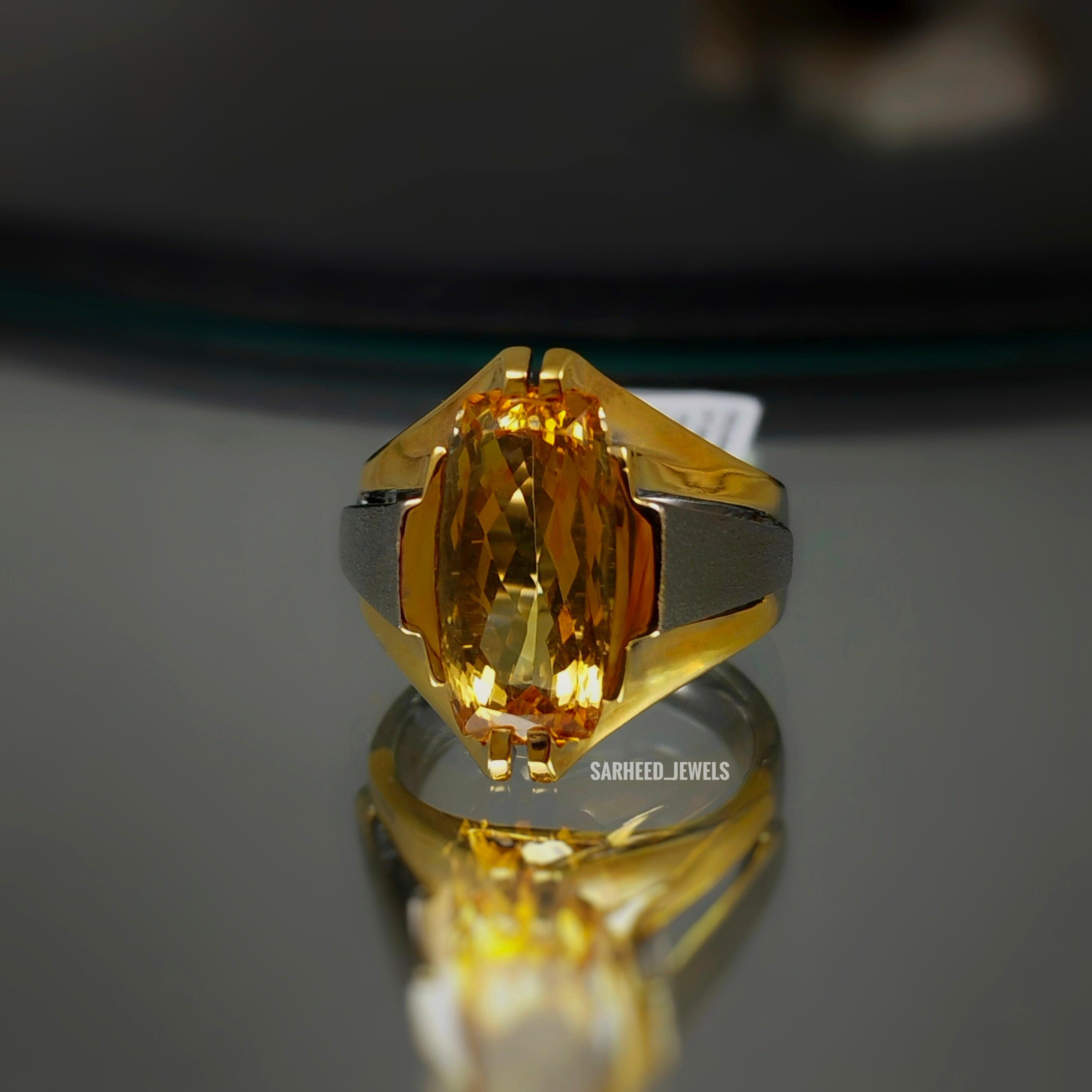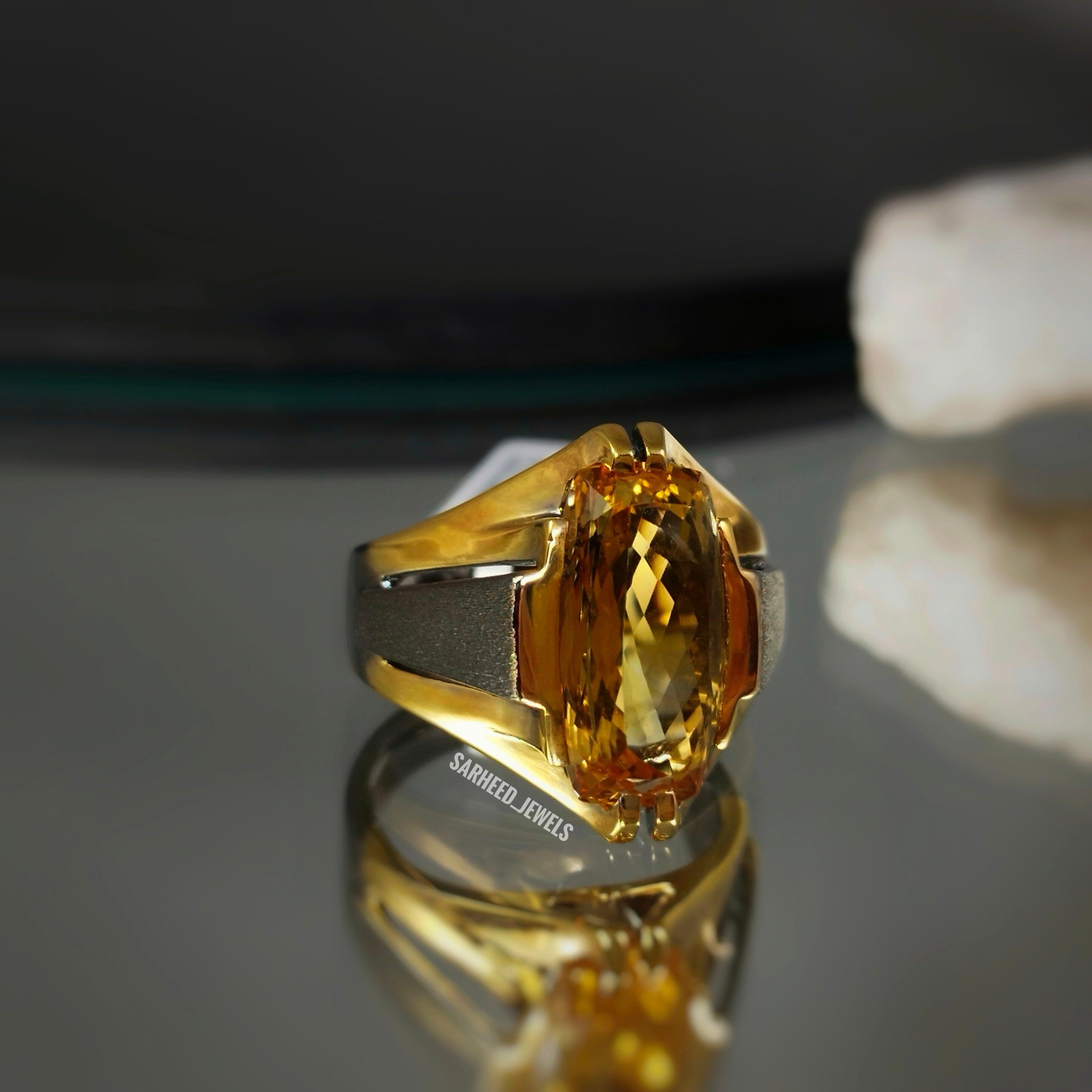 Bold men’s ring featuring a natural citrine set in 925 sterling silver with elegant black and gold plating, offering a striking blend of strength and refined style.